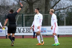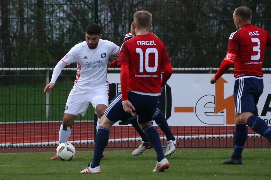 Vor den Augen von 1452 Zuschauern erlebte der Bundesliga-Nachwuchs des Hamburger SV am Freitagabend ein Debakel in Drochtersen. Mit 0:4 schickten die Maaßen-Schützlinge die Rothosen zurück in die Hansestadt – die Sieges-Serie ist damit futsch. Auch Trainer Dirk Kunert zeigte sich verärgert: „Wir sind überhaupt nicht in die Partie gekommen und waren nach dem 0:1 auch noch einer weniger“, erklärte Kunert anschließend. Explizit meinte der HSV-Coach damit die 36 Minute, als Referee Schlüwe nach einem dusseligen Handspiel von Jonas Behounek im Sechzehner auf den Punkt zeigte. Nico Mau trat an und verwandelte sicher für die Gastgeber. Zu allem Überfluss musste sich nur wenige Sekunden zuvor auch Kerim Carolus verabschieden, der nach einem Foulspiel im Mittelfeld die Ampelkarte gesehen hatte. Ein rabenschwarzer Tag für den HSV-Verteidiger, der auch in den Minuten zuvor bereits keine gute Figur abgab. Nach dem Seitenwechsel schien sich die Kunert-Equipe dann zu fangen – im Nachhinein war es nur eine Momentaufnahme. Knapp zehn Minuten war der zweite Durchgang alt, als Alexander Neumann das Leder nach einem Zuspiel von Nagel an HSV-Keeper Morten Behrens vorbei in die Maschen drückte.